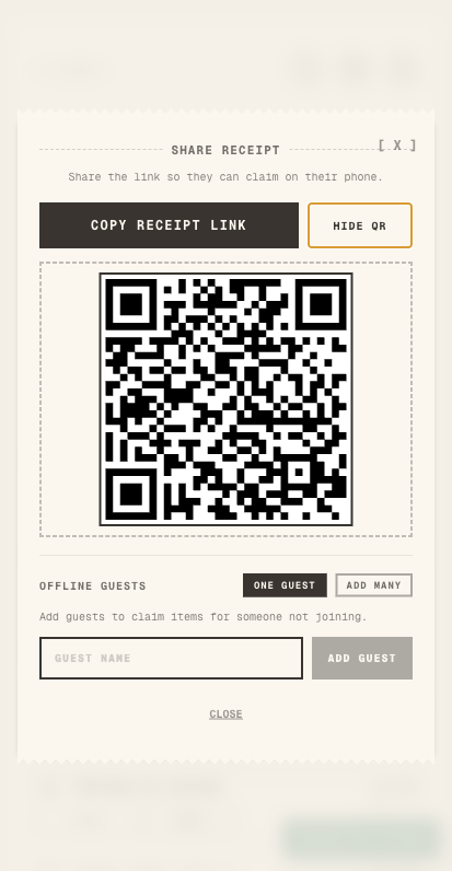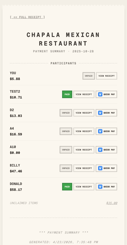 In that case, a calculator still leaves the host doing most of the work. The receipt has to become something the group can interact with.